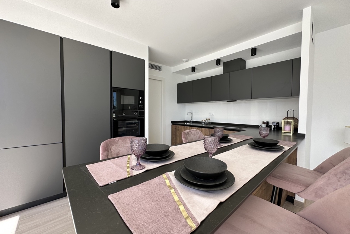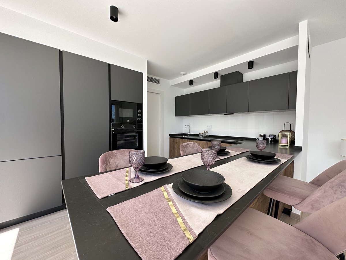 Key ready villa 529 950 EUR incl. Meubelen, AC, volledig ingerichte keuken met toestellen, kelder, LED-verlichting binnen en buiten, ingerichte badkamers met LED-spiegels, solarium met zeezicht, aangelegde tuin en zwemba