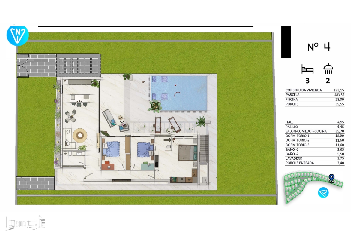 Een prachtige residentie met 40 vrijstaande villa’s. Er is keuze uit drie slaapkamers en twee badkamers of vier slaapkamers en drie badkamers met de beste buiten- en binneninrichting. Een woning ligt op een groot onafhankelijk perceel van ongeveer 500m2, met een ruim terras aan de woonkamer en keuken, privé zwembad, solarium, parkeerplaats en tuin.