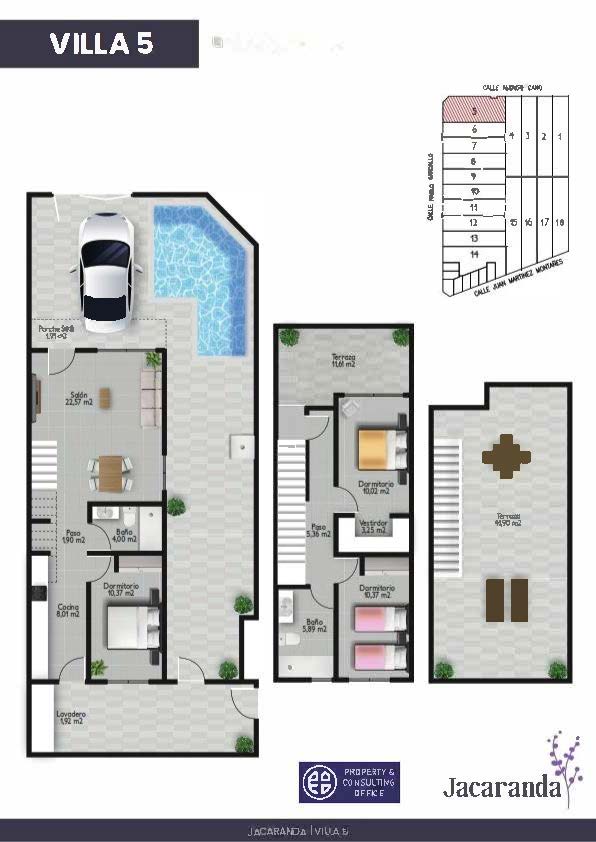 Nieuwe residentie met 18 townhouses allen met privaat zwembad, terras, dakterras en parking.