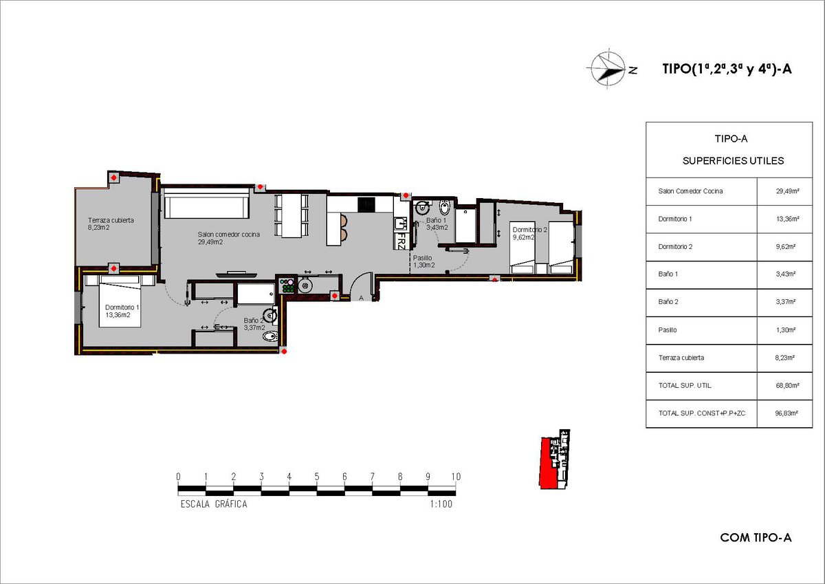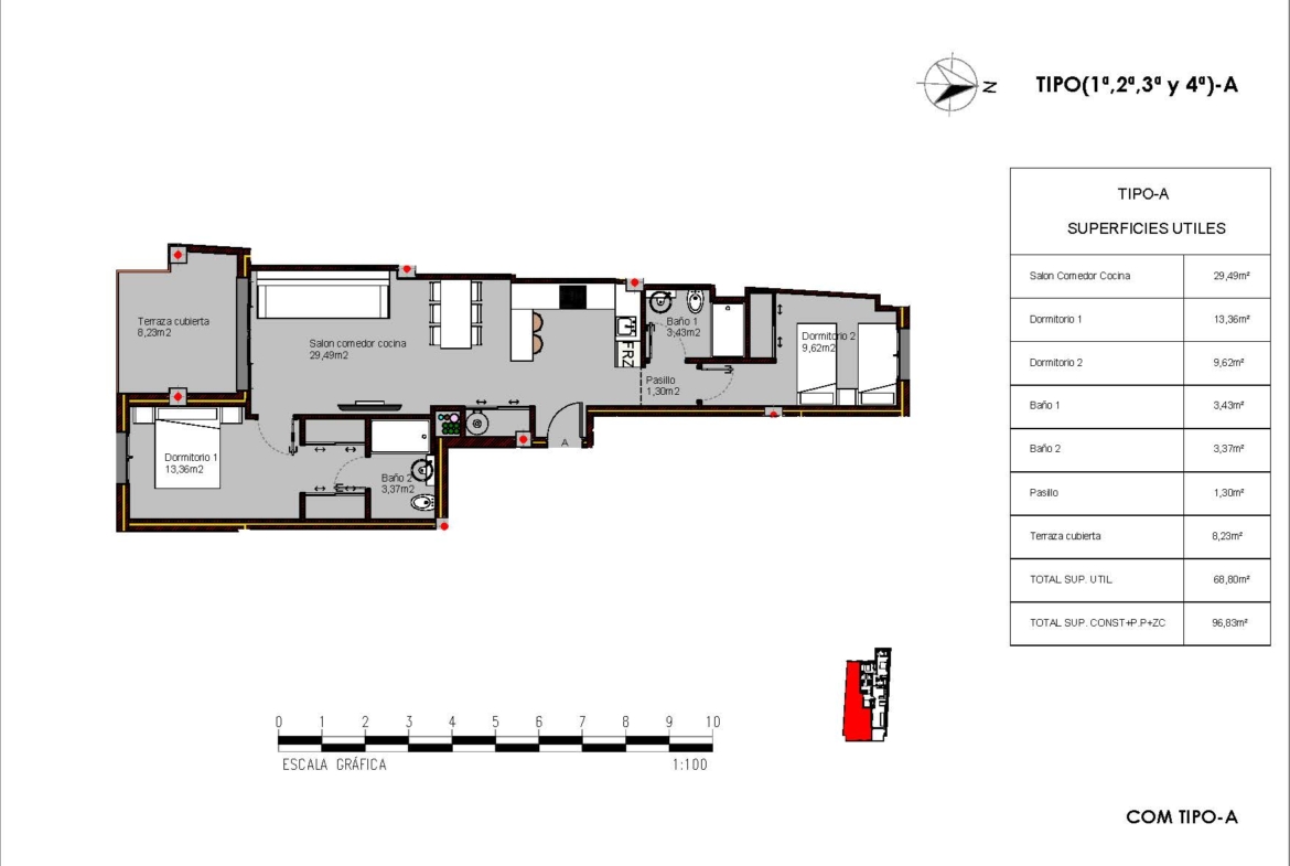 Elk appartement wordt luxueus afgewerkt en beschikt over een mooie woonkamer met toegang terras, PVC ramen met geluidsisolatie en thermische isolatie, ingebouwde kasten, LED-verlichting, volledig ingerichte keuken met toestellen, volledig afgewerkte badkamer met douchescherm en vloerverwarming, en pre-installatie van airco.