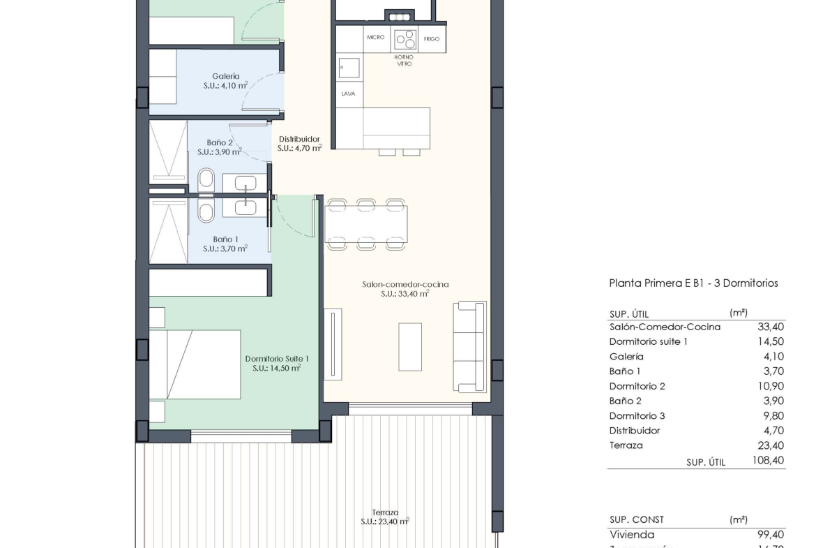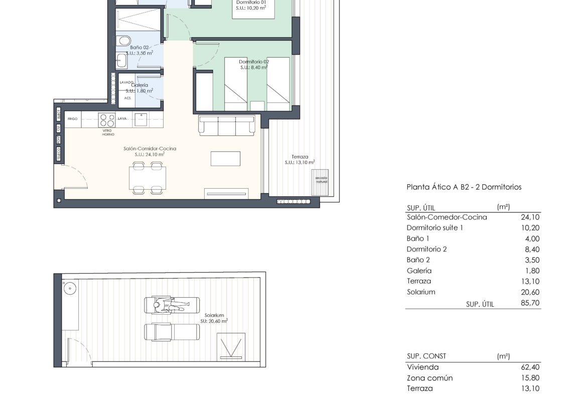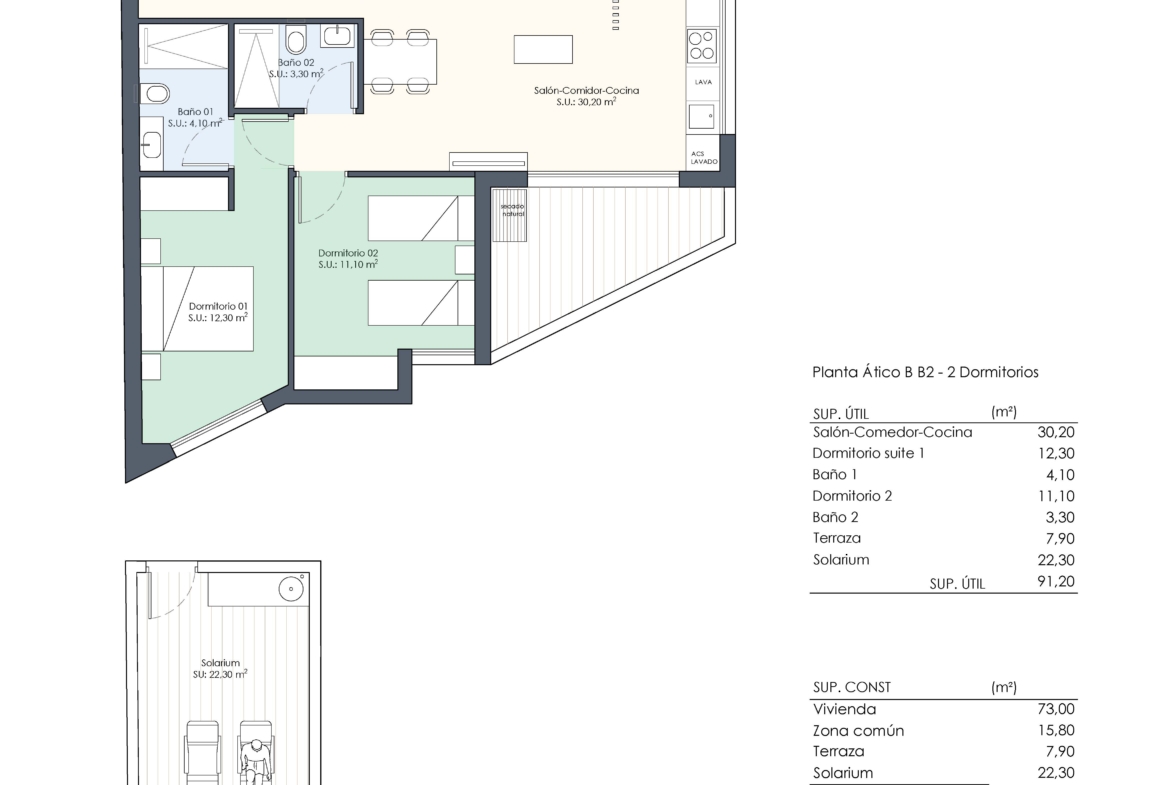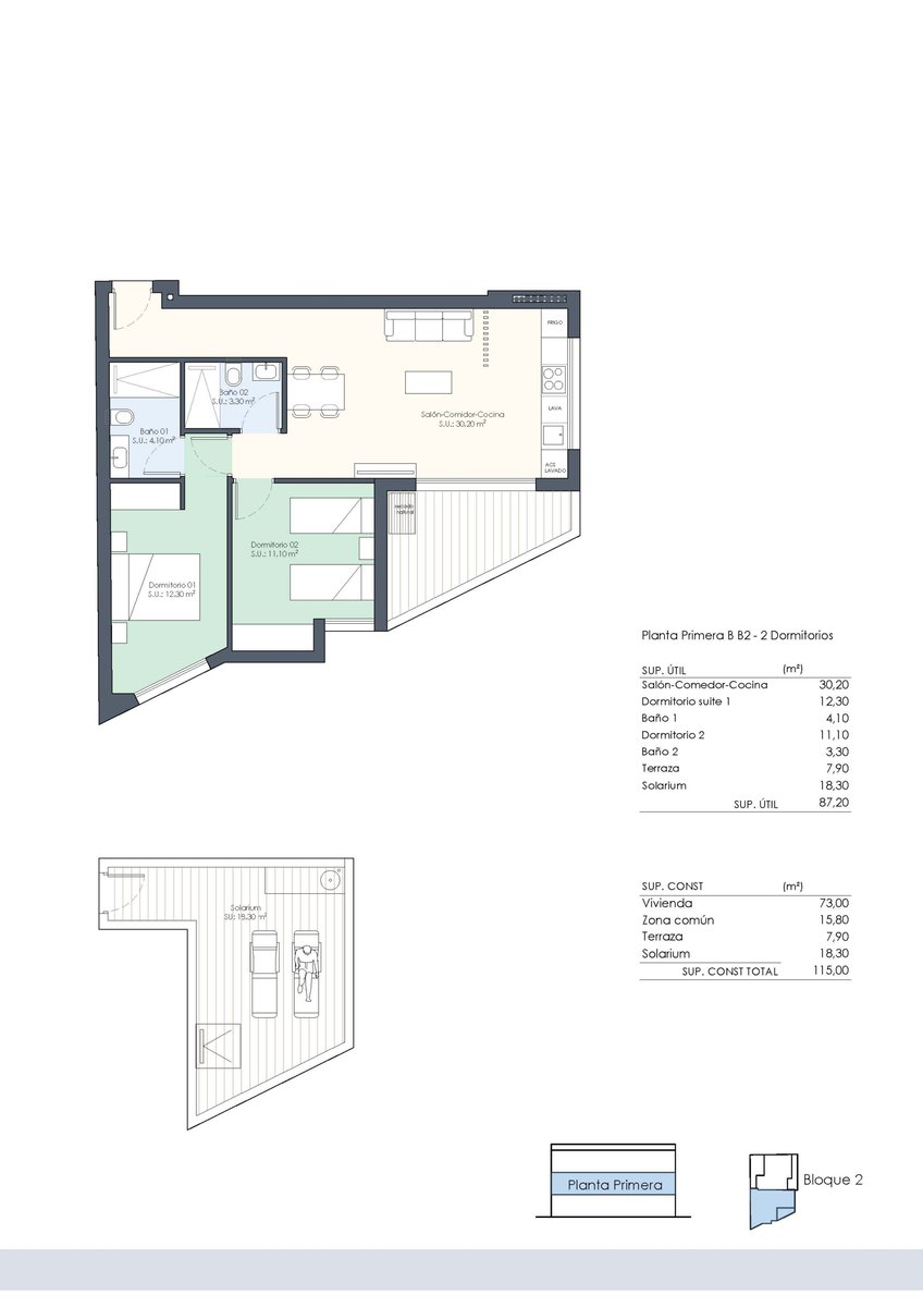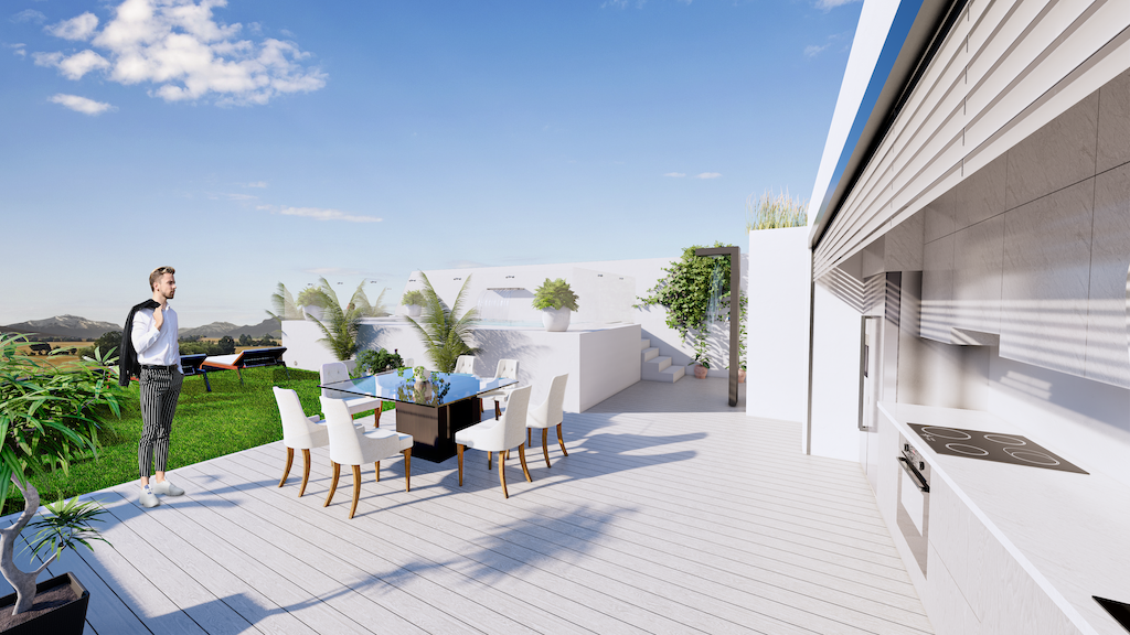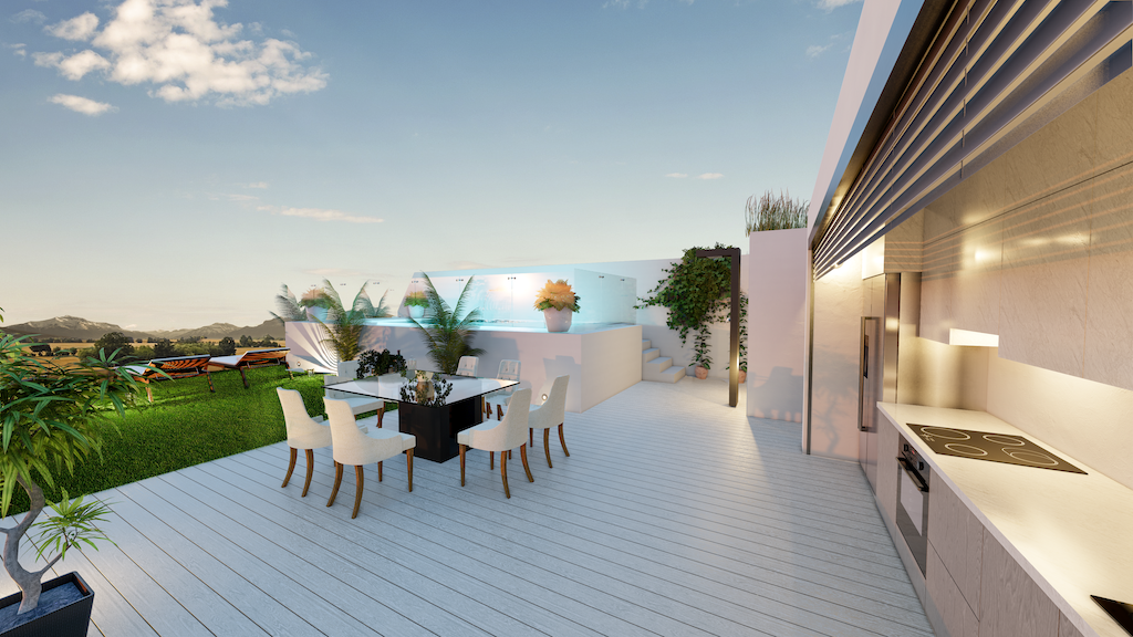 Elk appartement beschikt over 2 of 3 slaapkamers en 2 badkamers. De penthouses hebben een groot privé dakterras vanaf 75 m2 met een toilet en de voorbereiding voor een buitenkeuken.
