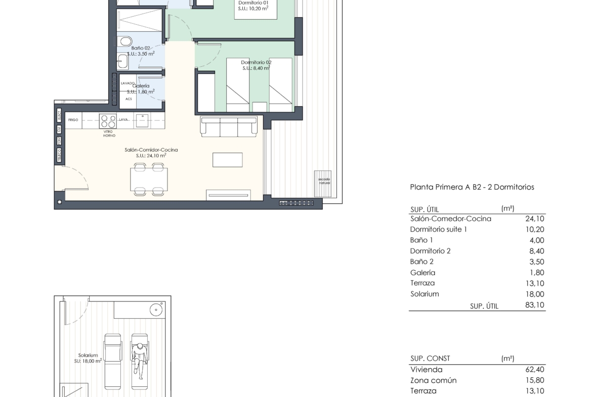 Het complex heeft een ruime groenzone met een zwembad, evenals parkeergelegenheid en een opslagruimte.