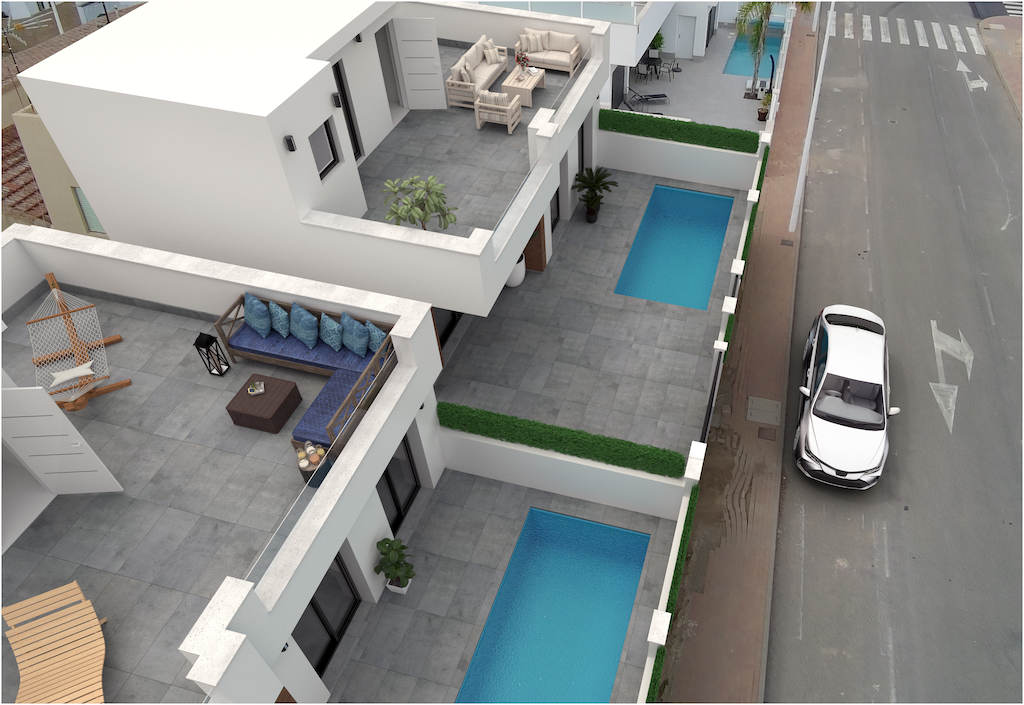 Dit exclusieve project bestaat uit 4 onafhankelijke villa’s met 3 slaapkamers en 3 badkamers, waarvan twee slaapkamers op de begane grond. Verder kan je genieten van een privézwembad en een groot solarium-terras waar je elke dag van het jaar van de zon kunt genieten.