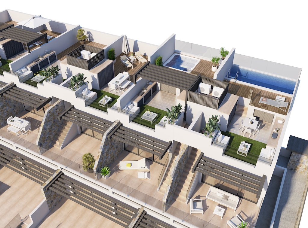 Verder is een mogelijkheid om een privaat zwembad of jacuzzi met pergola te installeren aan het appartement.